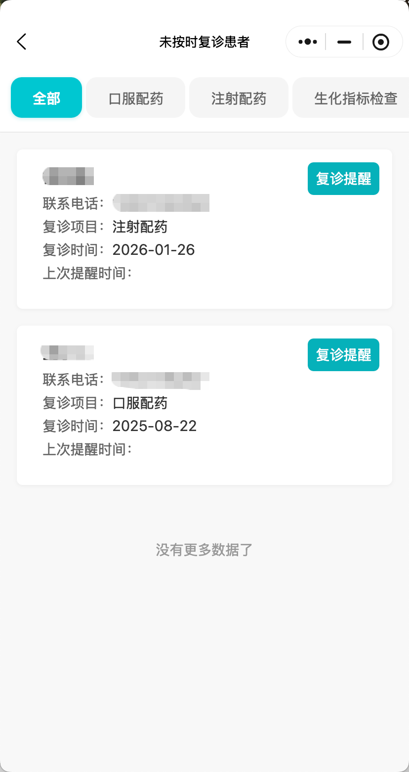 自动发送用药及复诊提醒,显著提升患者治疗依从性,确保治疗连续性。